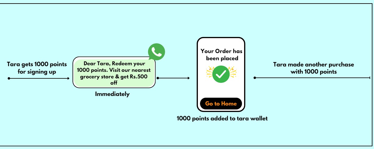 As Tara continues shopping, she accumulates an additional 1000 points and gains access to exclusive benefits, enhancing her sense of being a valued and cherished customer.